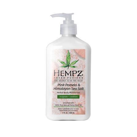 Help protect skin with the pomelo-derived vitamin C in this lightly scented lotion. Hempz Pink Pomelo & Himalayan Sea Salt Herbal Moisturizer is enriched with 100% pure natural hemp seed oil. Pink Pomelo is rich in Vitamin C and antioxidants to help invigorate and rejuvenate skin’s appearance. Sea Moisture Complex helps to retain moisture and maintain hydration of the skin. Shea Butter provides moisture and essential nutrients to skin, helping to protect against free radical damage and daily elements. Paraben Free, Gluten Free, 100% Vegan, THC Free, Cruelty Free.